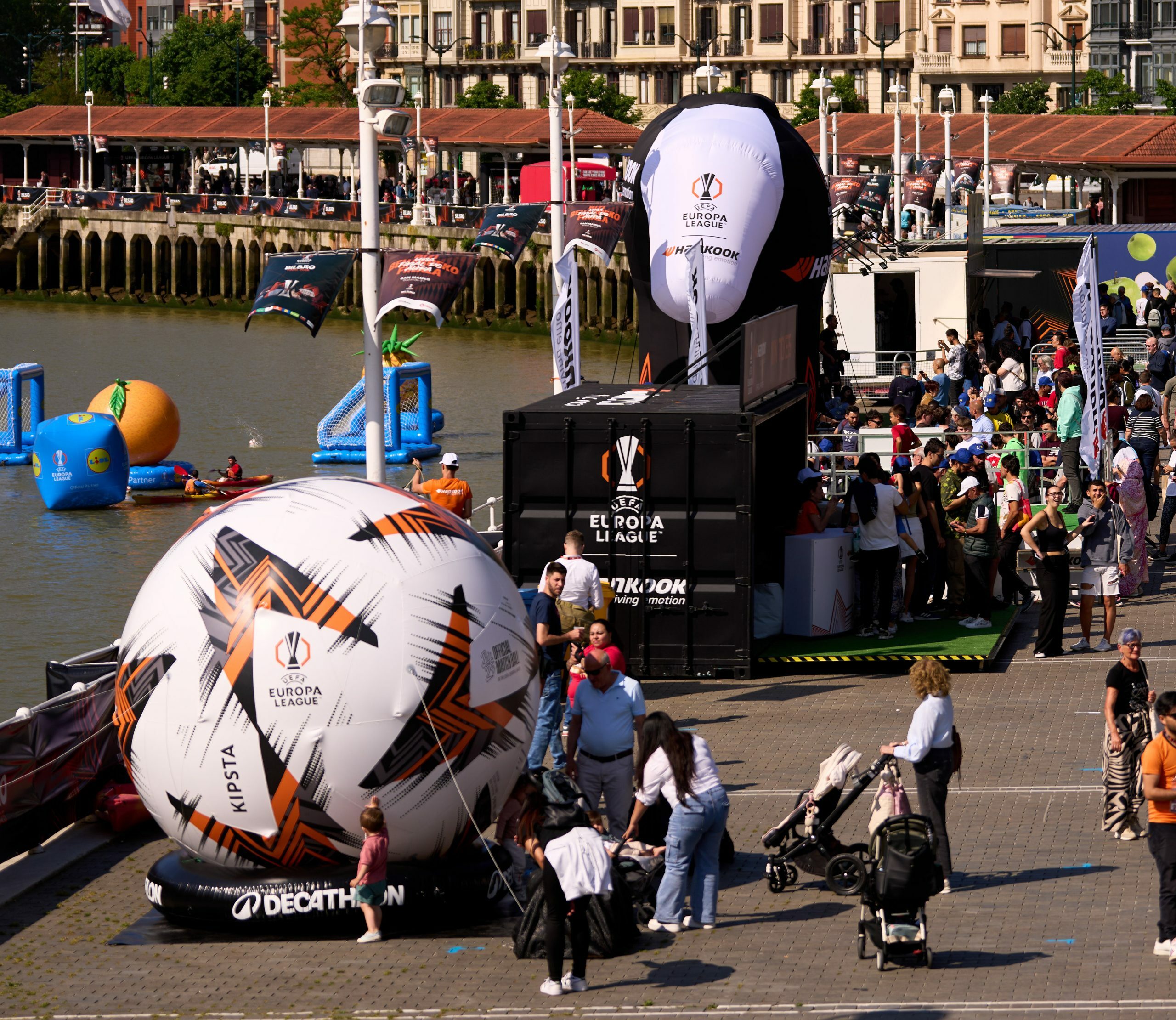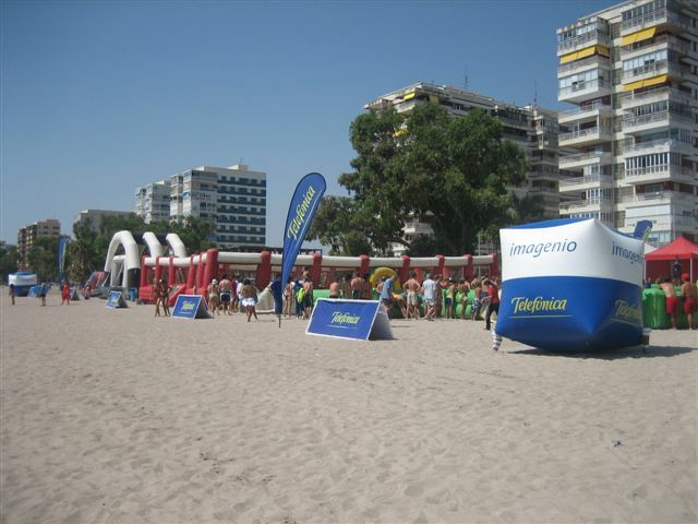 Publiflot® también produce soportes estandarizados como arcos de meta, beach flags, tótems hinchables y otros elementos complementarios a los flotantes que instalemos en un evento.